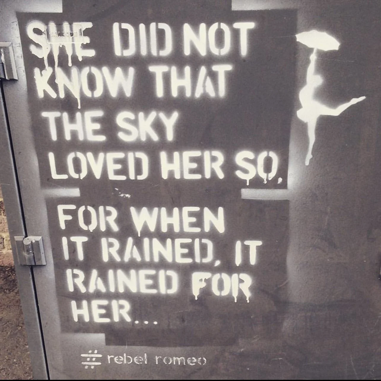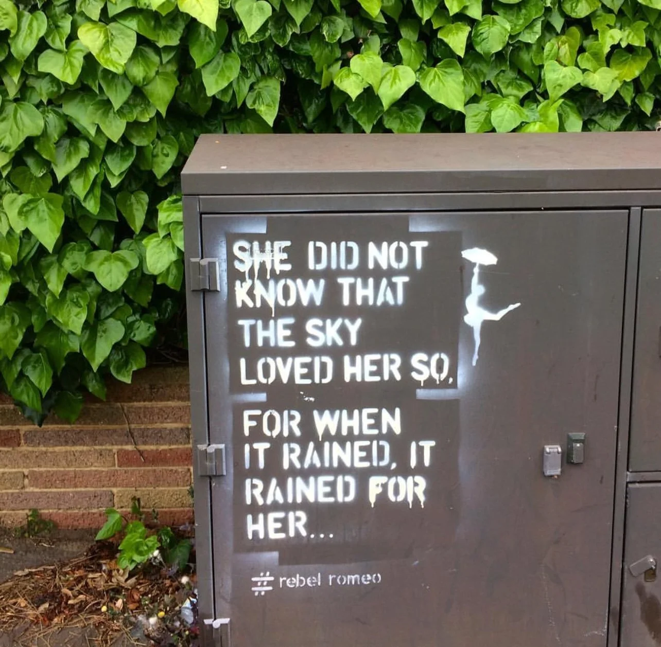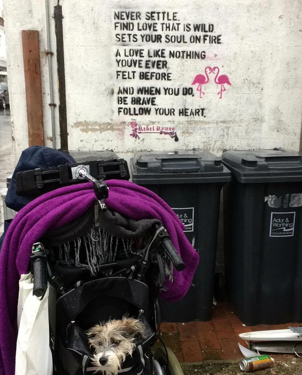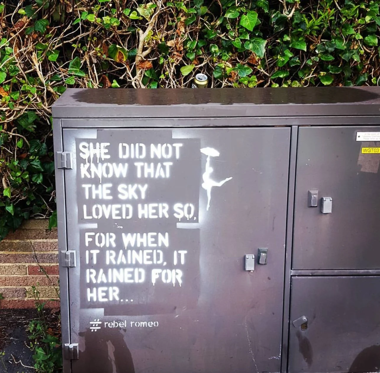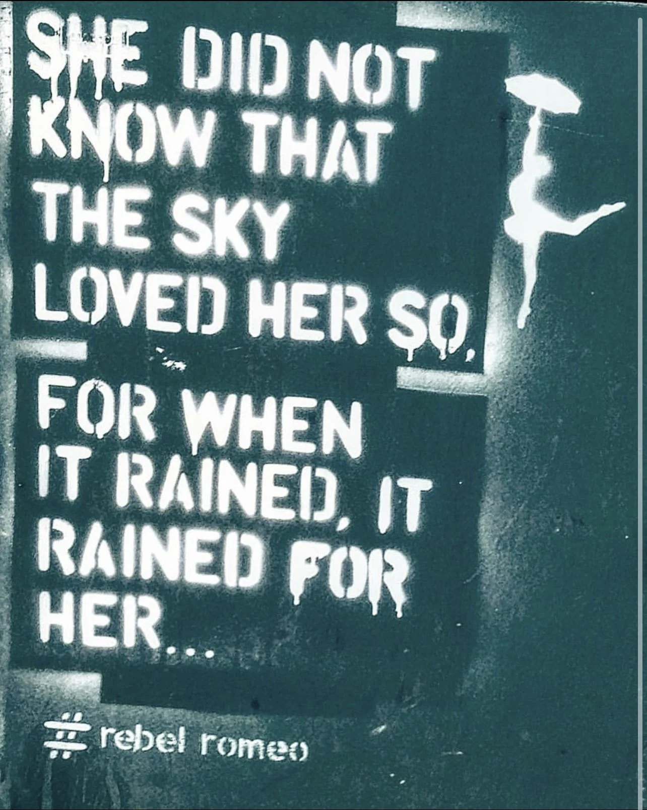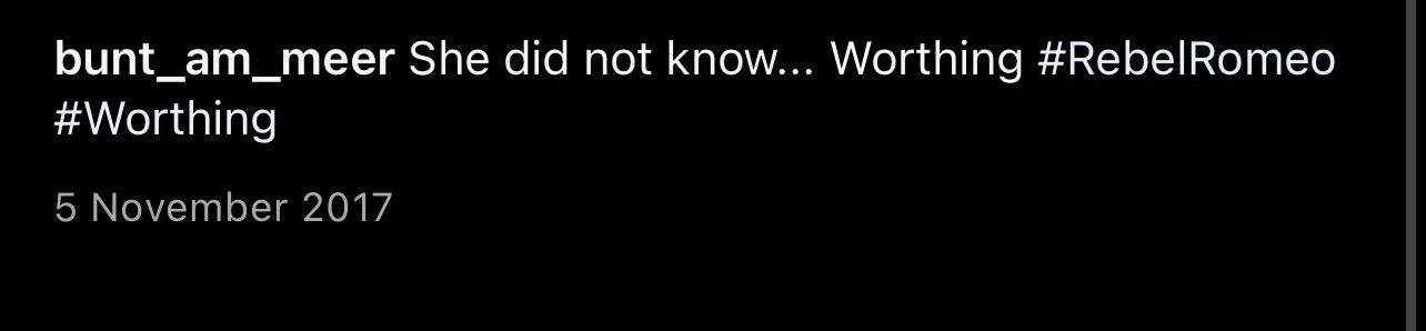 Starting in Spring of 2017, I took my poetry from Instagram to the streets of Worthing, painting words of love and hope for strangers to see. Armed with stencils and spray paint, I worked in the early hours, transforming walls into canvases for emotion and expression. Over time, my work became part of the town’s visual landscape, with passersby capturing and sharing it under the hashtag #RebelRomeo. This collection features photos taken by the public—moments of connection between art and audience, seen through their eyes.